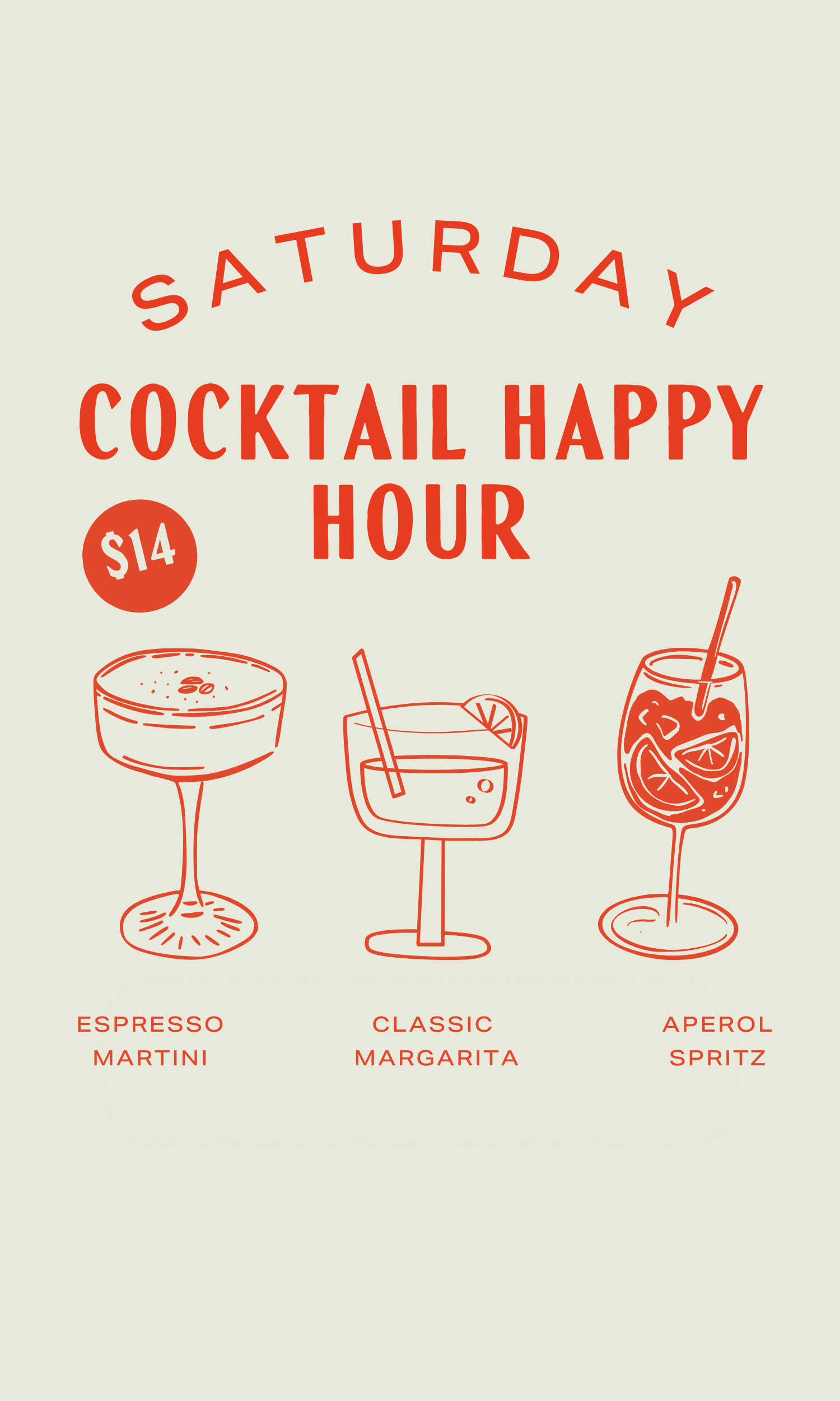 Celebrate your Saturday at The Del Newcastle with an afternoon cocktail happy hour from 2–6pm, featuring $14 Espresso Martinis, Aperol Spritzes, Margaritas, and more.