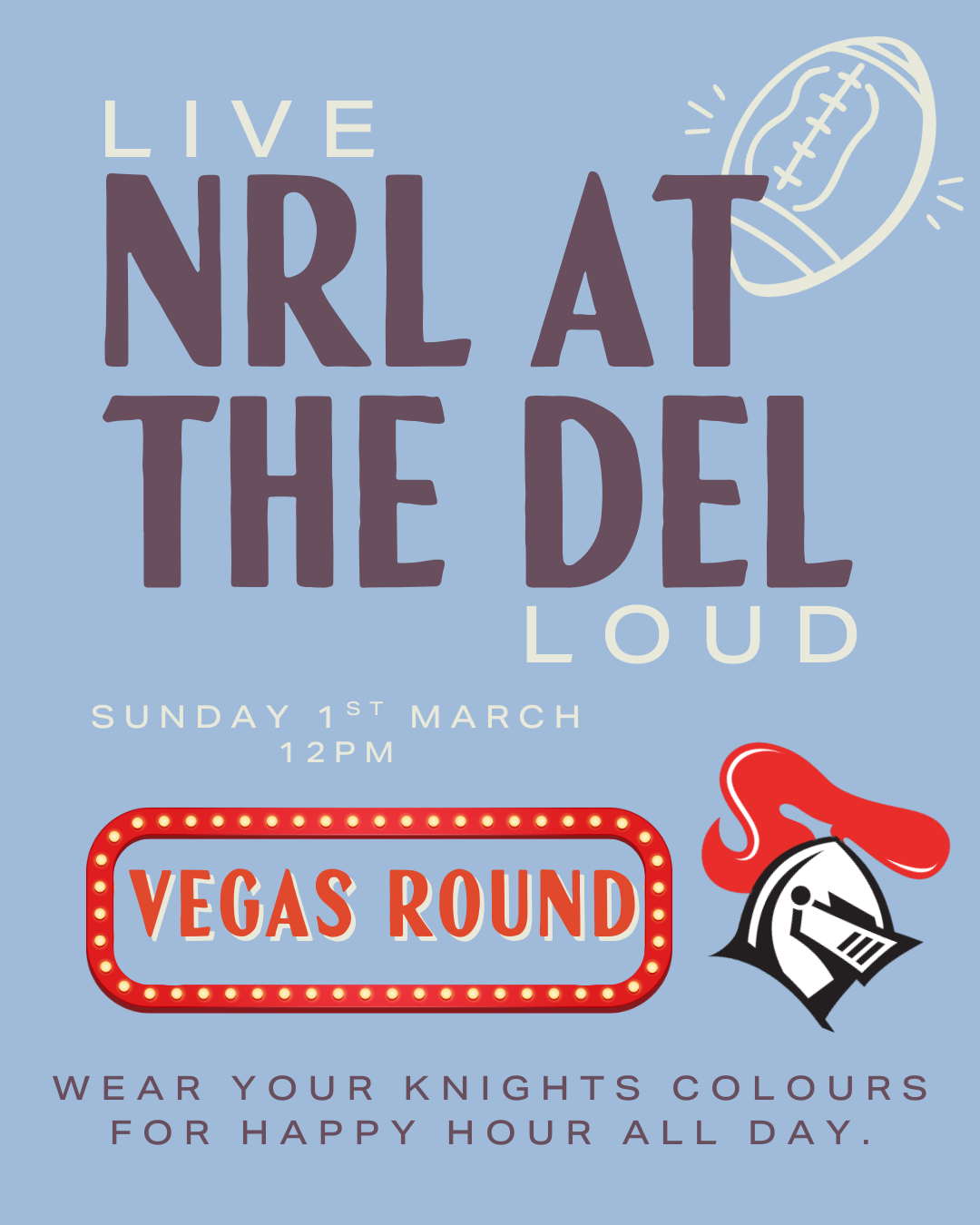 The Knights are heading to Vegas — and The Del is where Newcastle watches it live. Sunday 1st March at 12pm