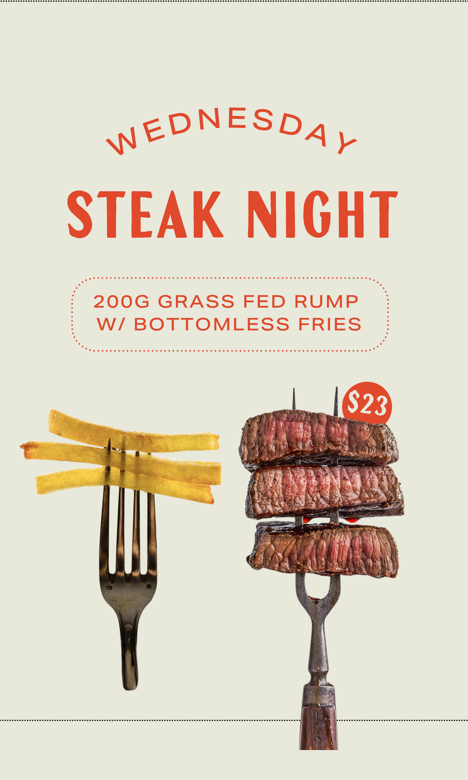 Craving a proper steak night in Newcastle without the hefty price tag? The Del delivers with our $23 Steak Frites + Bottomless Fries… a midweek favourite in the heart of Cooks Hill.